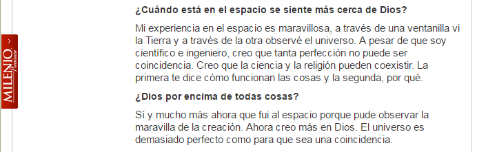 A comienzos de mayo, el periódico Milenio publicó una entrevista al ex-astronauta José Hernández. En general las preguntas fueron bastante bobas, como la que comienza "De niños todos queremos ser astronautas y bomberos..." o la de "¿Un astronauta se la vive en la Luna?".